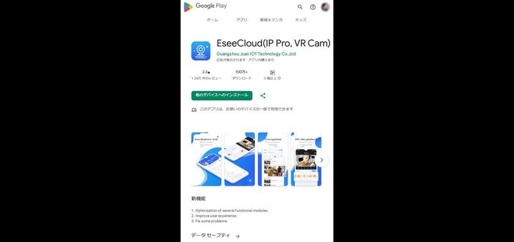 EseeCloudはYASKAMO / JUANCLOUD など他社にOEM供給しているアプリのベースアプリ、IP Pro / VR Camera など旧製品用アプリを統合したネットワークカメラの設定・閲覧アプリです。 映像の延滞が尋常でないレベルに酷い上にカメラ画像にアイコンキャラクターや文字が被っていたり、突如サブスクリプション勧誘キャッチが出たり、実用的な防犯カメラシステムとして使う前提で設計されていません。
