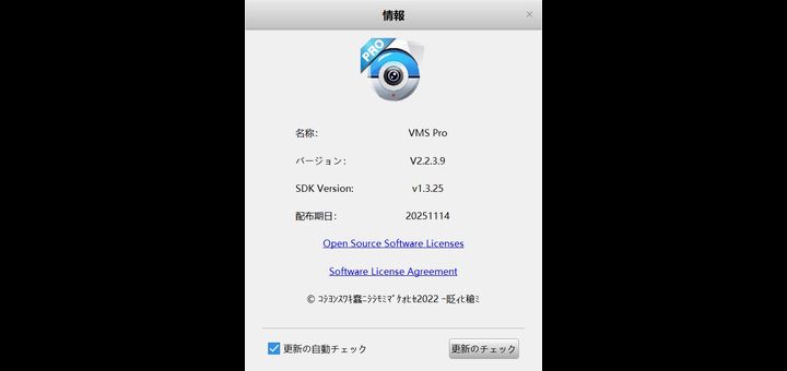 クラウド対応のVMS Pro V2.2.3.9 ソフトが11月17日にベータリリースされました、2.2.1.3リリースから2か月ほどになりますが新形式のカメラへの対応か極めて稀ですがWindows11で発生していたバグフィックスがメインと思われます、ファイルサイズが微妙に違うのでどこか細かい所にUIの変更があるのかもしれませんが見つけられませんでした。