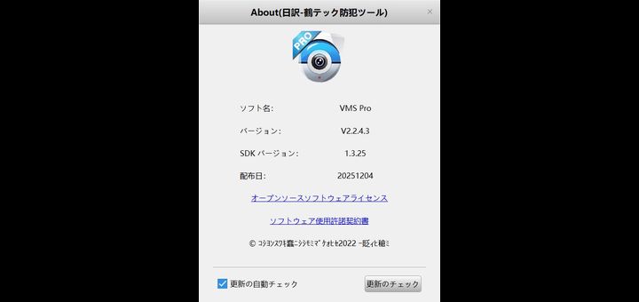iCSeeアプリ対応カメラのパソコン用閲覧・操作・設定ソフト VMS Pro ソフト(クラウド対応)が12月4日にV2.2.4.3バージョンに ベータリリースされました、2.2.3.9リリースから1ヶ月程度でファイルサイズもほぼ同じですからプログラムのバグ修正程度と思われるので見た目の違いはほぼありません。
