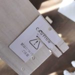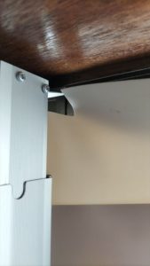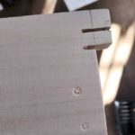 桐集成材を取付けフレームに強く押し付ければネジ頭の跡我が残り、それを目印にして桐集成材に穴を開けます。