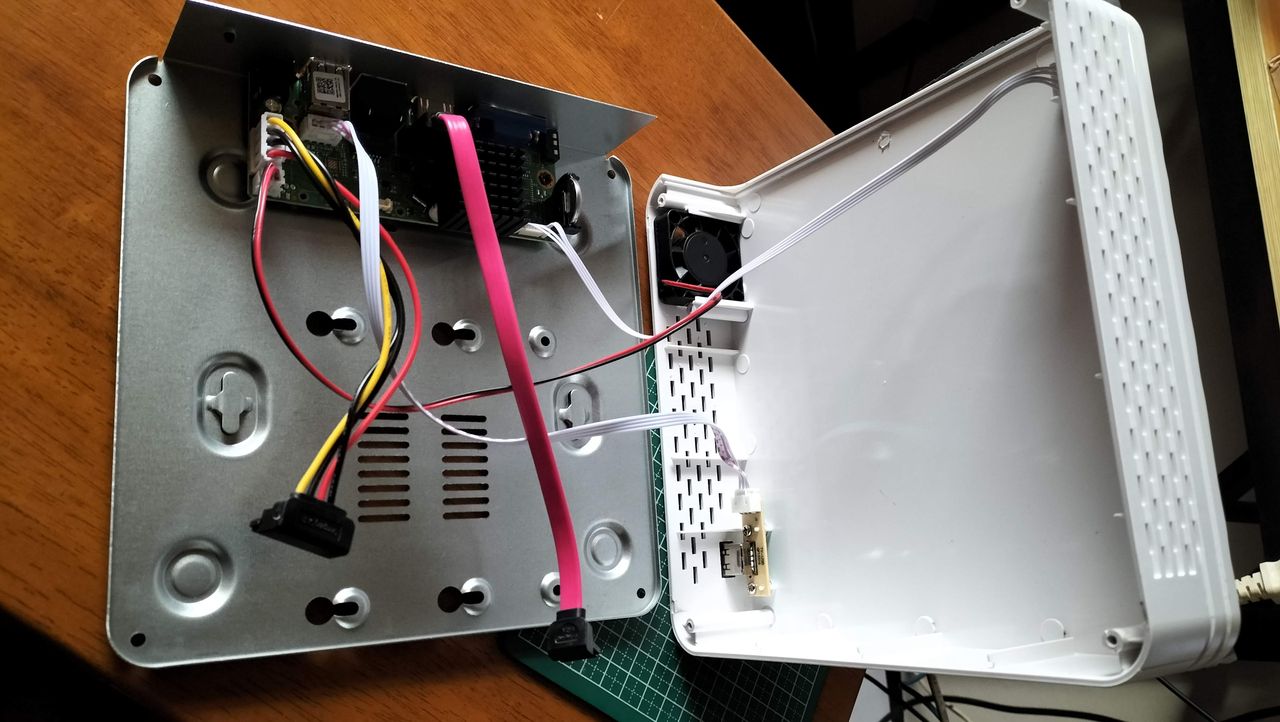 K8-45X16S-KLは横200 x 奥200 x 高さ45mm のコンパクトサイズ筐体に小型ファンを内蔵し、小型筐体で問題になる排熱不全による熱暴走・処理低下を軽減・解消されます、ただ小型ファンだけに作動音がするのと追加するHDDでそこそこの消費電力となるので、付属のACアダプターでは容量不足により起動不良や動作不良になる可能性が高いので、別途12V5A(DCプラグ外径:5.5mm/DCプラグ内径:2.5mm/2.1mm共用 センター+)の高容量ACアダプターをご購入下さい。