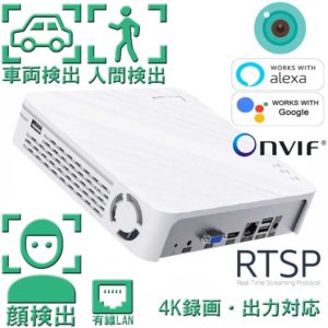 映像出力はVGA(アナログRGB)とHDMIの2つがありますが4Kを出力する場合はHDMIで4K対応テレビ・モニターを使用して下さいVGAは規格的に4K出力には対応していません、ネットワークカメラの対応は仕様では1280x720ドット(100万画素)解像度からの対応となっていますテストしてみると仕様外の640x480ドットでも表示・録画が可能でしたが、旧式過ぎるネットワークカメラは独自映像フォーマットの特殊なモデルが多く全て動作するとは限りませんから対応しない場合は残念ですが規格寿命としてお諦め下さい。