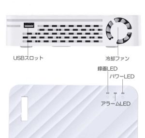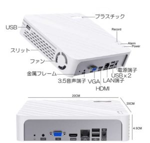 NVRレコーダーの中では小型で設置し易い筐体ですが、インジケーターLEDが上面、USBが奥と横とバラバラに配置するより前面に揃って配置する事はできなかったんですようか?またパソコンの様な温度でファン回転数をコントロールする機能は無いので常に全力回転なので会議室や寝室など静音が必要な場所への設置は注意が必要です。