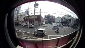 自主運用では問題になりませんが、動作感知画像は処理前の魚眼画像なので、防犯規定で「画像形式」が定められている企業や自治体では規定外となる場合がありますのでその際は、JA-739KRF-Tの様なハードで平面化処理を行うモデルを検討下さい。