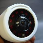 大きい魚眼レンズの球形ガラスカバーに追い出される様に12個の表面実装赤外線LEDが配置されています拡散タイプなのかリフレクターはありません、バレット型なら標準的で絶対的なこの配置ですが魚眼レンズを覆うカバーに上下また左右から意図的に強い光を当てた時に撮影環境が光より暗かった場合、レンズが自身を撮影する事があります(夜の自動車で室内ライトを点灯した時の感じです)レンズの前にカバーがあれば必然的に起こる現象で照明の真下に設置した時や壁に赤外線LEDが反射した時に発生します、少し角度を変えたり、設置場所をずらしたりすれば対応ができますが、初めて体験すると何か判らず驚きますから設置の際はこの様な事が起こりえる点を留意してください。