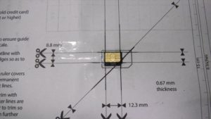 SIMをセロテープで張り付けマジックで線を引きます。