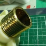 なのでこのまま日本で使うには加工が必要で接続部先端のバリや凹みなどの凸凹をそのままにしてしまうと日本の平パッキンの収縮程度ではカバーできない隙間が出来ますので紙ヤスリを使って接触面を平らにしておく必要があります。