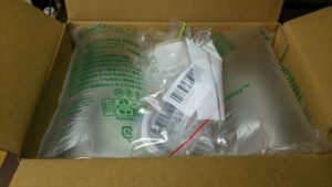 輸送か配送中にゲリラ豪雨かスリップ事故かは知りませんが商品がほぼ水没状態となり入荷からやり直しになった苦い経験から、最近は商品を大サイズフリーザーバッグに入れて梱包しています、単価が安くて簡単に封が出来て防水性能(本来は水を漏らさないですが)が高いフリーザーバッグは重宝します。