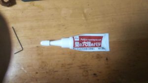 多色の壁は除きますが一般的な白色の壁紙の時は安い「ダイソー 壁の穴埋めパテ 20g」を使います、パテ系は封を開けてしまうと時蓋を締めていても硬化が進み2ヶ月程度で使えなくなるので、工具箱の隅に未開封のコレが数個常備しています。