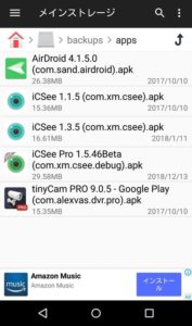②Android スマホ・タブレットのファイル操作アプリで先ほどダウンロードしたファイル「iCSeexxxxxx.apk」(xxxxの部分はバックアップソフトやバージョンにより異なる)をタップします。(画像はファイルマネージャー+と言うAndroidアプリです)