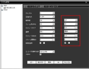①CMSソフトでカメラのビット・フレームレートを調整する。