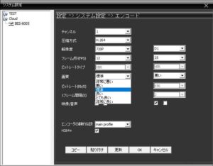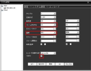 対応カメラにはH264+のチェックボックスがあります、H264動画形式より低容量で同程度の画質になります、スマホや低速度の回線で接続する場合ならチェックしておいた方が良いでしょう。
