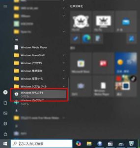 スタートメニューから「Windows セキュリティ」をクリックします。