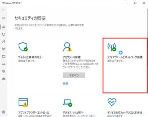 ファイヤーウォールとネットワーク保護 アイコンをクリック。