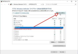 「(アクティブ)」のネットワークに☑が入っていない場合は「設定の変更を」クリックして☑してP2P Clientに通信許可を与えます。