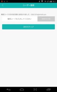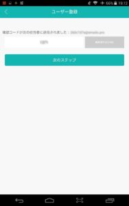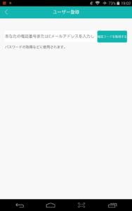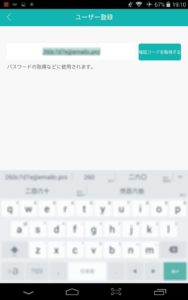 ユーザー登録画面に移行したら、受信可能なE-mailアドレスを入力します。(SMSが使える携帯番号でも良い様ですがしない方が良いです) ミスがないか確認して 確認コードを取得するボタン をタップします。(画像はメールアドレスを入力しました。)