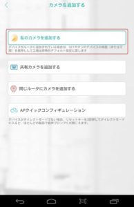 初起動で初カメラ登録の場合は、スマートカメラ画面 が飛ばされ カメラを追加する画面 へ自動的に移行します。