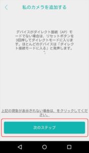 私のカメラを追加する画面に移行します、次のステップ ボタンをタップします。