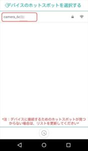 (表示されない場合はリスト更新、カメラの再起動、カメラを工場出荷状態へリセット、ACアダプタ不良確認などを行って下さい)