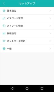 私のカメラ画面上の歯車ボタンをタップしてセットアップ画面に移行して、パスワード管理をタップします。