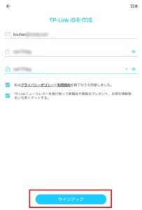 任意のパスワードを入力 サインアップ をタップします。