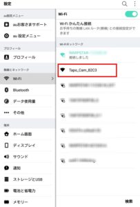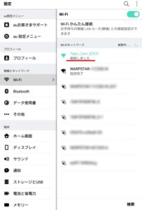 スマホ・タブレットのWifi接続画面に移行します、家・会社のWIFIからカメラのSSIDに接続を変更します。