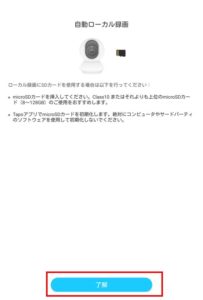 SDカードにローカル保存する旨の説明がこのタイミングで表示されます。