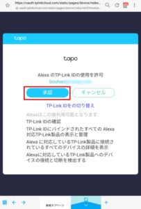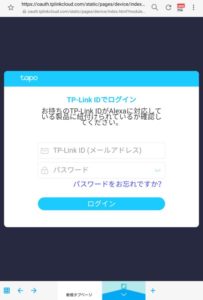 AlexaがTapoに接続できる様にTP-Link Tapoアプリのアプリログイン IDとパスワードを入力します。