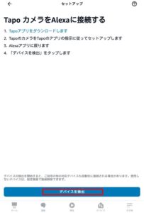 AlexaアプリにTapoデバイス(この場合はカメラ)の追加が可能になりましたので デバイスを検出 タップします。