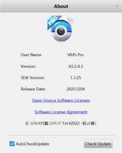 VMS Pro Windows64bitソフト クラウド対応版 V2.2.4.3へアップデート。