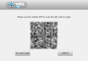 起動時に表示されたQRコードをログイン中のiCSeeアプリで撮影すれば、自動的にログインしiCSeeアプリで追加しているカメラがVMS Pro ソフトに同期されます。