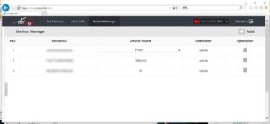 スマホが手元にない場合や、スマホアプリで運用していない方はhttps://www.xmeye.netリモートサイトにアクセスして、Device Manageタブをクリックし変更したいカメラの登録名称をクリック。 入力欄に変化しますので、任意の登録名称に変更して 左の×をクリックします。 以上で完了です。