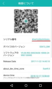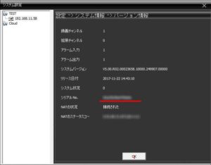 SerialNo.欄にはカメラのシリアル番号、CMSソフトならバージョン情報に